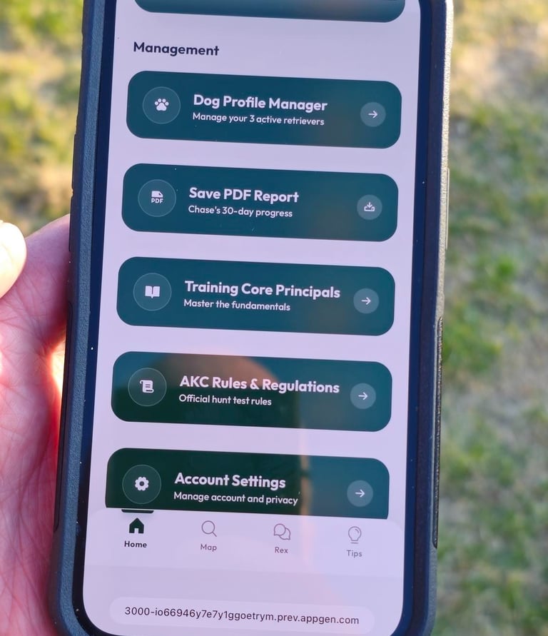 Inside the app, you’ll have direct access to the official AKC Rules & Regulations—fully embedded and always at your fingertips. Whether you’re new to hunt tests or looking to sharpen your understanding, this is your go-to reference in the field or at home.